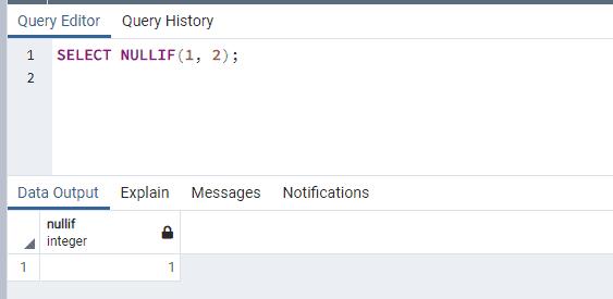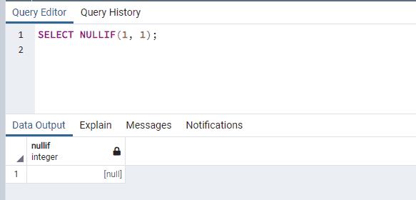 function returns the null value if both the specified arguments are equal; otherwise returns the first argument.