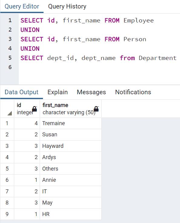 ...The following rule must be applied to combine the result set of two or more quires using the UNION operator.