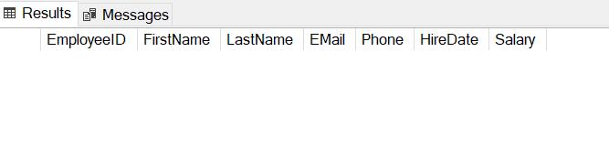 DELETE FROM Employee;Now, the Select * from Employee query will display the empty table.